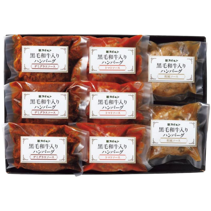 黒毛和牛を使用した合いびき肉を、粗挽きで仕上げました。デミグラスソース、和風、トマトソースの3種類の食べ比べセットです。